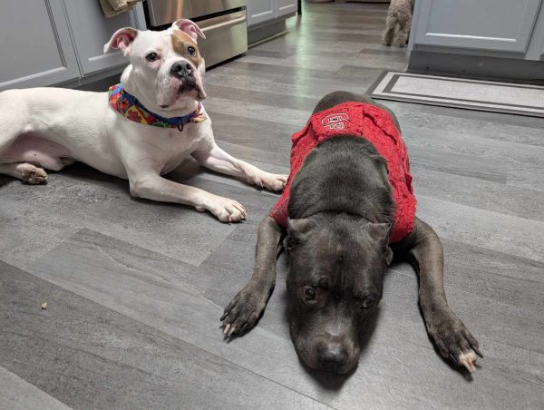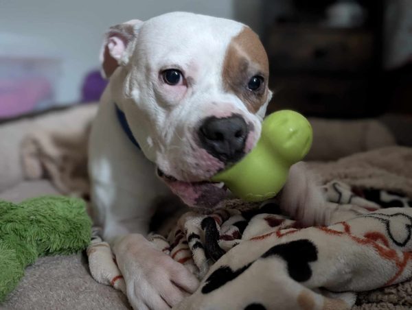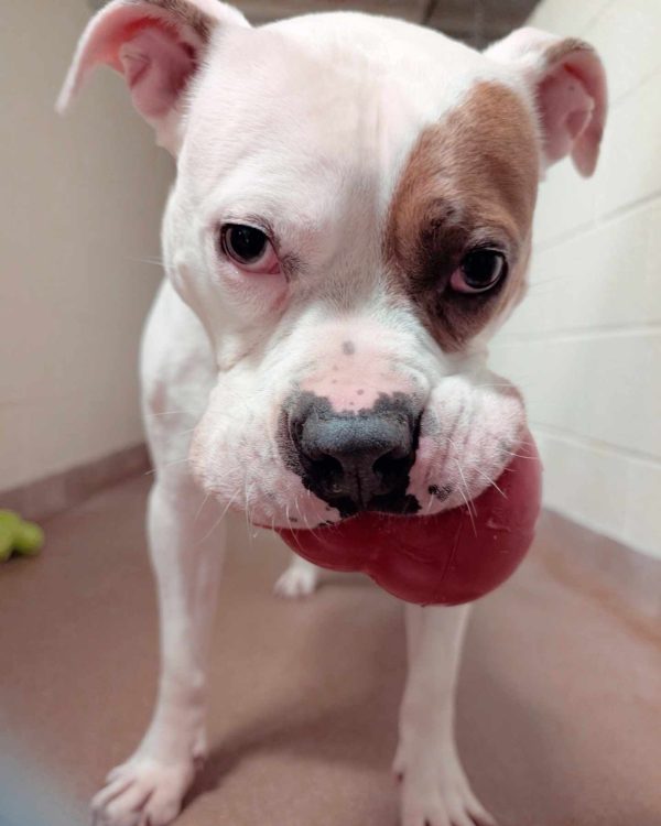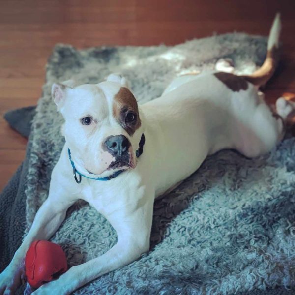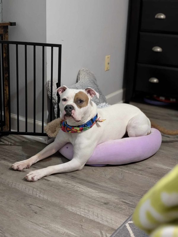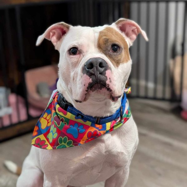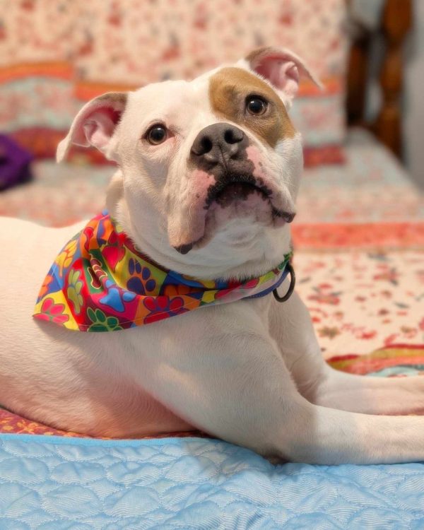Chief is a charming and handsome 5 year old with a sweet bully face, a heart full of love, and a personality that wins everyone over, especially the ladies! This loyal guy is all about his people and thrives when included in daily life, whether you’re hanging out at home, heading out for a walk, or running errands together. Chief isn’t overly active, but he lives for his daily walks. They’re his favorite part of the day! He makes the perfect walking companion and enjoys strolling around campus with his foster mom, exploring the neighborhood, and visiting local parks. He currently accompanies his foster mom to work, loves morning puppuccino runs, and looks forward to every stroll. He’s also a great car buddy. He jumps right in with no hesitation, settles quickly in the back seat, and usually lounges out, taking up all the room like a king on his throne. Whether it’s a short trip or a longer ride, Chief’s calm and relaxed nature makes traveling with him a breeze. Chief is crate and potty trained, sleeps soundly through the night in his big dog bed, and listens like a pro when called. Chief knows basic commands like “sit” and “crate” and is actively learning more every day! He’s food and praise motivated, making training a fun bonding experience. He also enjoys enrichment activities and treat puzzles. A stuffed Kong, he considers the ultimate treat. Chief does well living with medium to low energy dogs, including small breeds and seniors. While he’s not one to roughhouse or initiate play with other pups, he’s a respectful housemate and would do well with other easy-going housemates. Affectionate and friendly, Chief would do best in a home with adults or older kids (teens+), simply because of his size (50lbs) and goofy energy. He’s a great match for someone who wants a devoted companion by their side through thick and thin and doesn’t mind some snuggles along the way. If you’re looking for a loyal companion with a big heart and an even bigger personality, Chief could be your perfect match! Chief is currently being fostered in North Carolina and can be transported along the East Coast as far north as Maine to his adoptive home. Ready to make Chief a part of your life? Apply to adopt him here: https://underhoundrailroad.org/adoption-application/ Want to follow his adventures? Check him out on Instagram @chiefinthehouse and on Facebook at at https://www.facebook.com/share/17Lk3BoThJ/